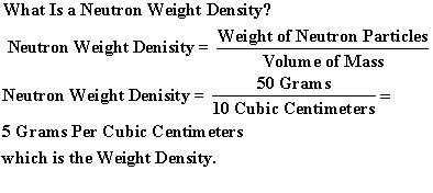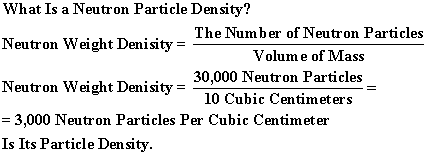 A Neutron Mass 30,000 Particles and weighs 50 Grams with a Volume 10 Cubic Centimeter. What is the Neutron Weight Density? What Is the Neutron Particle Density? |