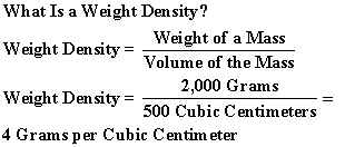 A Weight Density is the Weight of a Mass of Particles Divided by the Units of Volume That The Particles Occupy. |